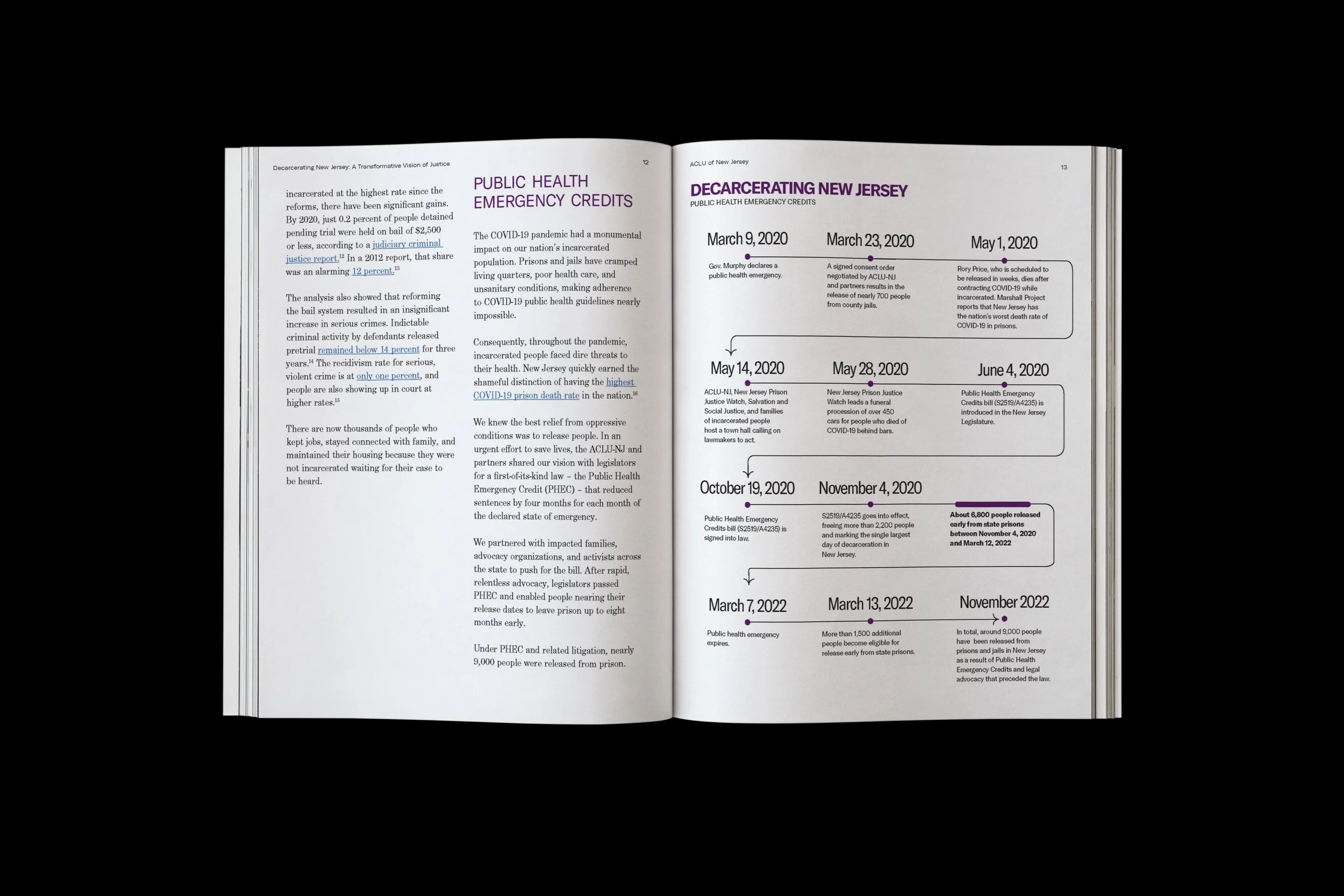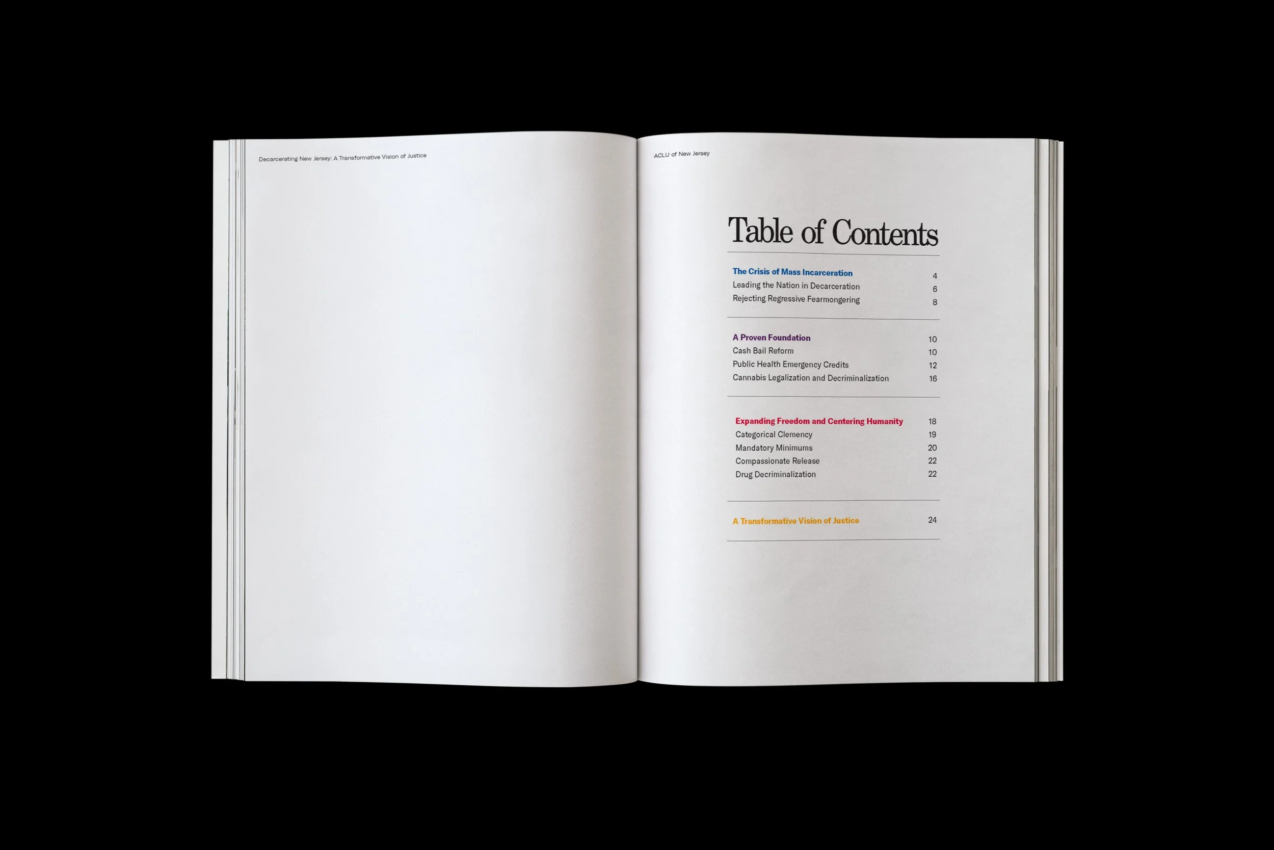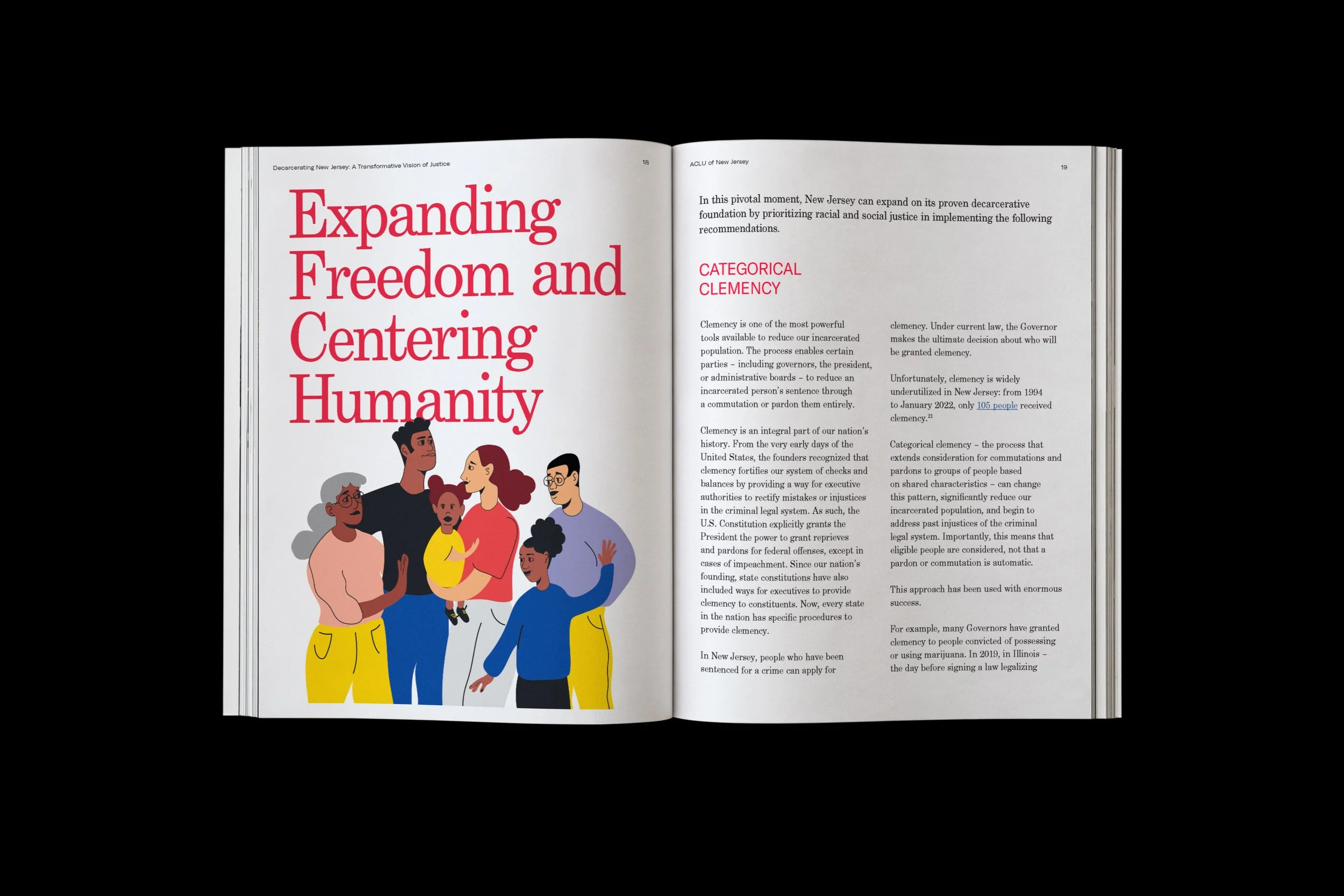 Decarcerating New Jersey: A Transformative Vision of Justice is a digital magazine that has driven policy conversations around reimagining New Jersey’s criminal justice system. The 2023 report highlights data from 2017–2022, a period during which New Jersey led the nation in reducing its prison population. My primary design objective was to infuse the publication with illustrations and visual elements that foster inclusivity and approachability.