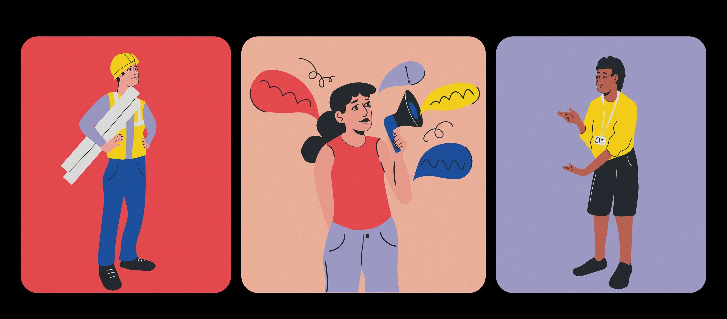 At the core of my design approach were illustrations depicting vibrant, everyday scenes of human interaction—individuals engaging in daily activities and imagining their futures. These playful yet intentional depictions were created to both captivate the audience and inspire a sense of optimism. I also developed a color palette that harmonizes with ACLU’s branding, incorporating complementary secondary tones to expand the visual range.